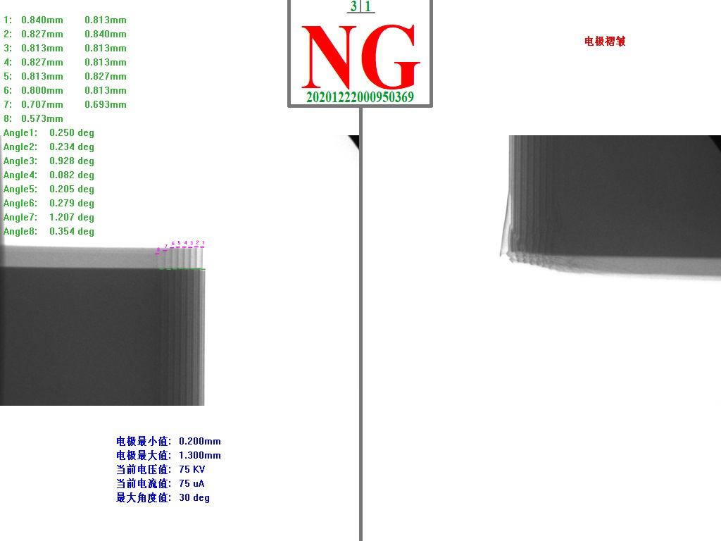 5. 項目介紹:檢測電芯正負(fù)極對齊度,極片彎曲角度